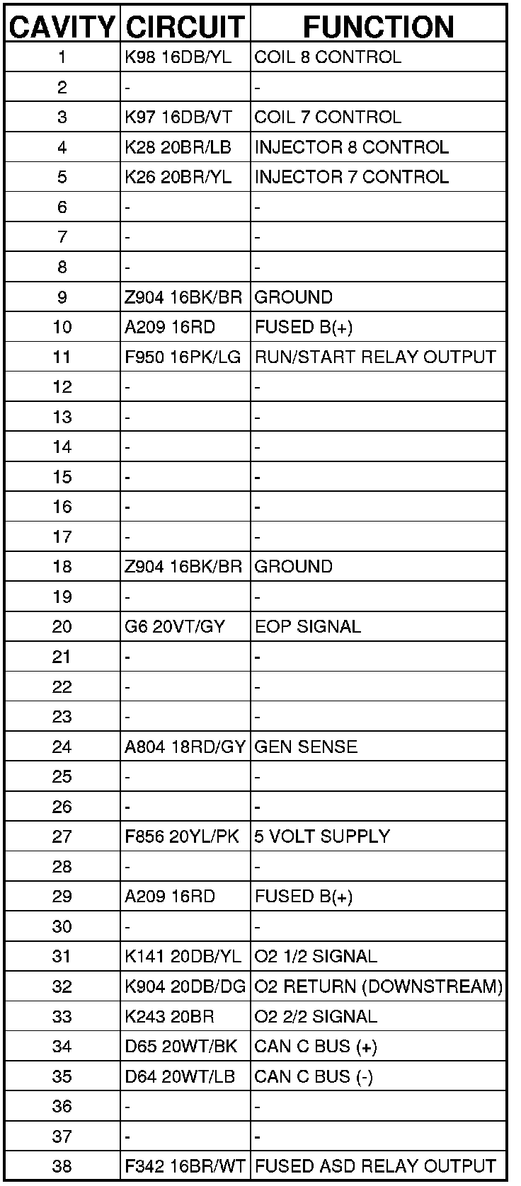 Powertrain Control Module C1 (Headlamp And Dash) 38 Way