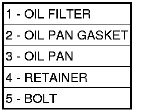 3. Remove the bolts (5) and retainers (4) holding the oil pan to the transmission.