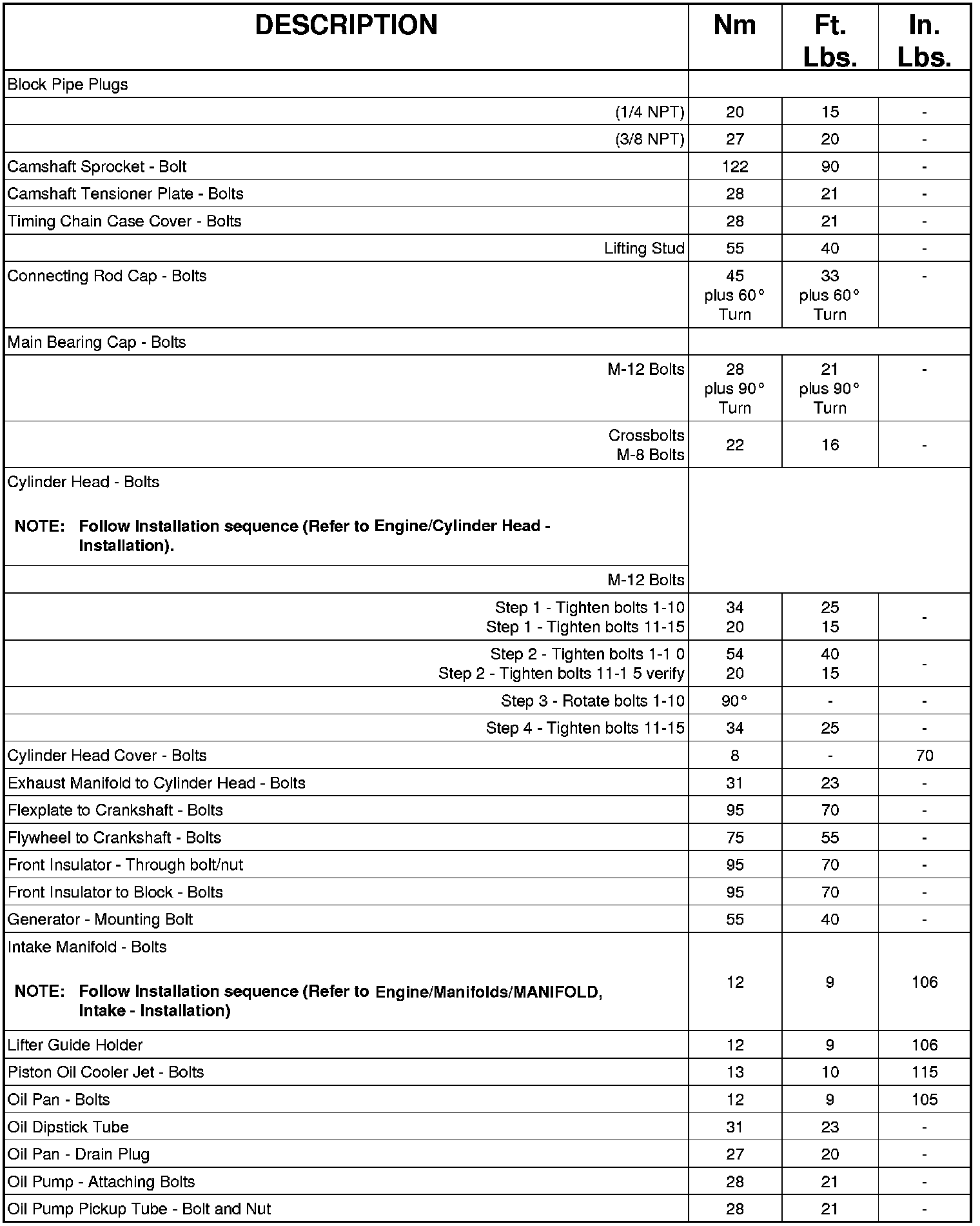 Tighten main bearing cap cross bolts to 28 Nm ( 21 ft. lbs.) in the sequence shown again.