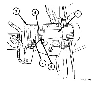 1. A tab on the ignition switch (4) indexes to a notch in the lock cylinder housing (1). Also, a slot in the end of the ignition switch fits over the shaft in the end of the lock cylinder housing. Use the ignition key to rotate the lock cylinder to align the ignition switch (2) with lock cylinder housing (1). Insert ignition switch (2) into lock housing (1) until locking tabs (4) are seated into openings on lock housing.