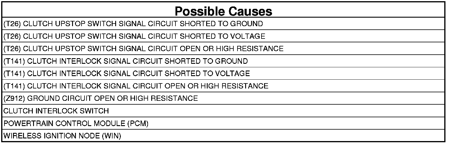 - Repair the short to voltage in the (T26) Clutch Upstop Switch Signal circuit.