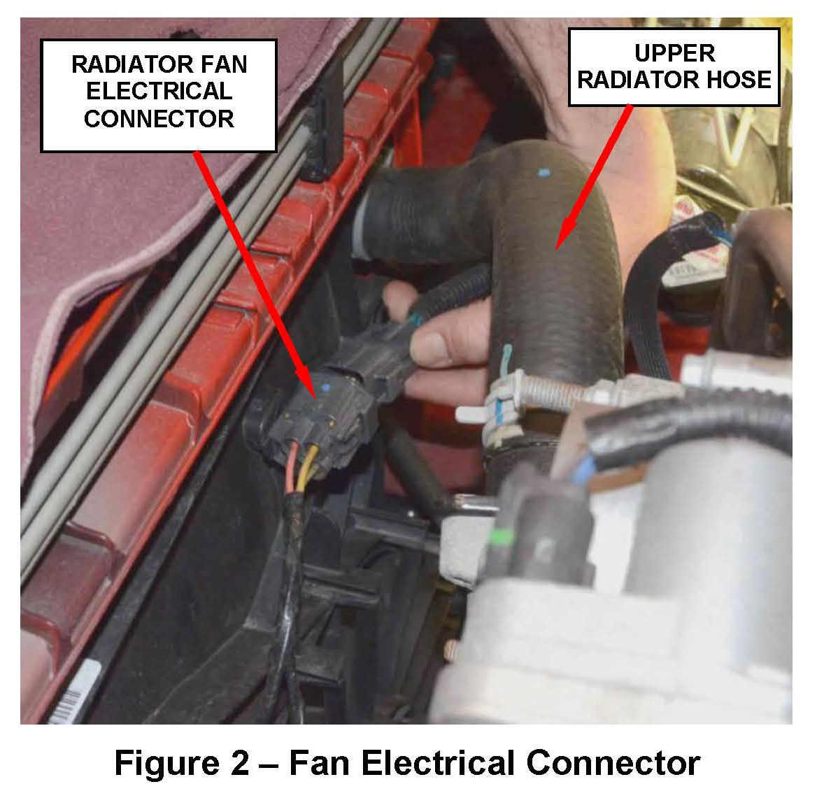 4. Disconnect the radiator fan electrical connector (Figure 2). UPPER RADIATOR HOSE.