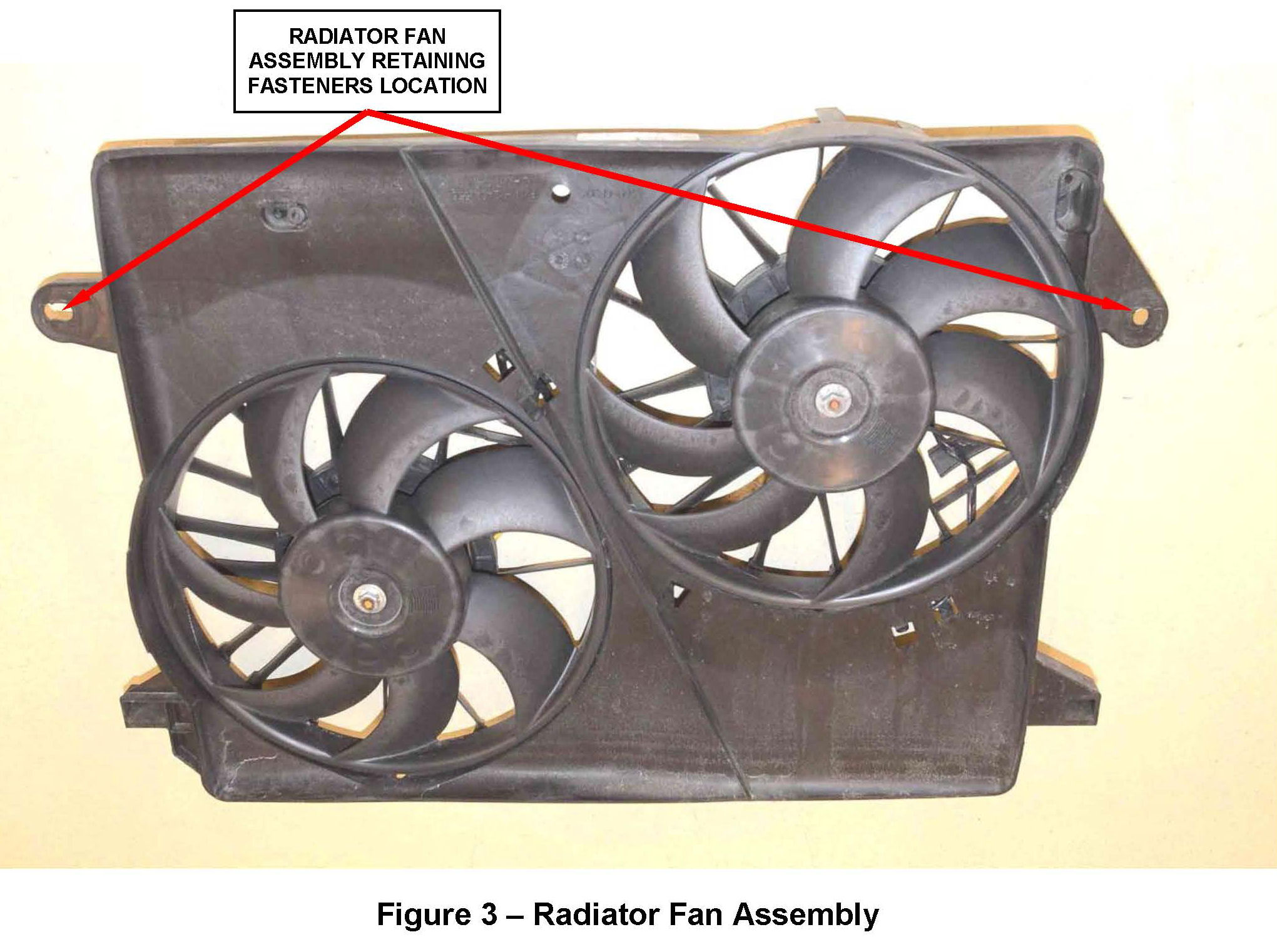 5. Remove and save the two radiator fan assembly retaining fasteners (Figure 3).