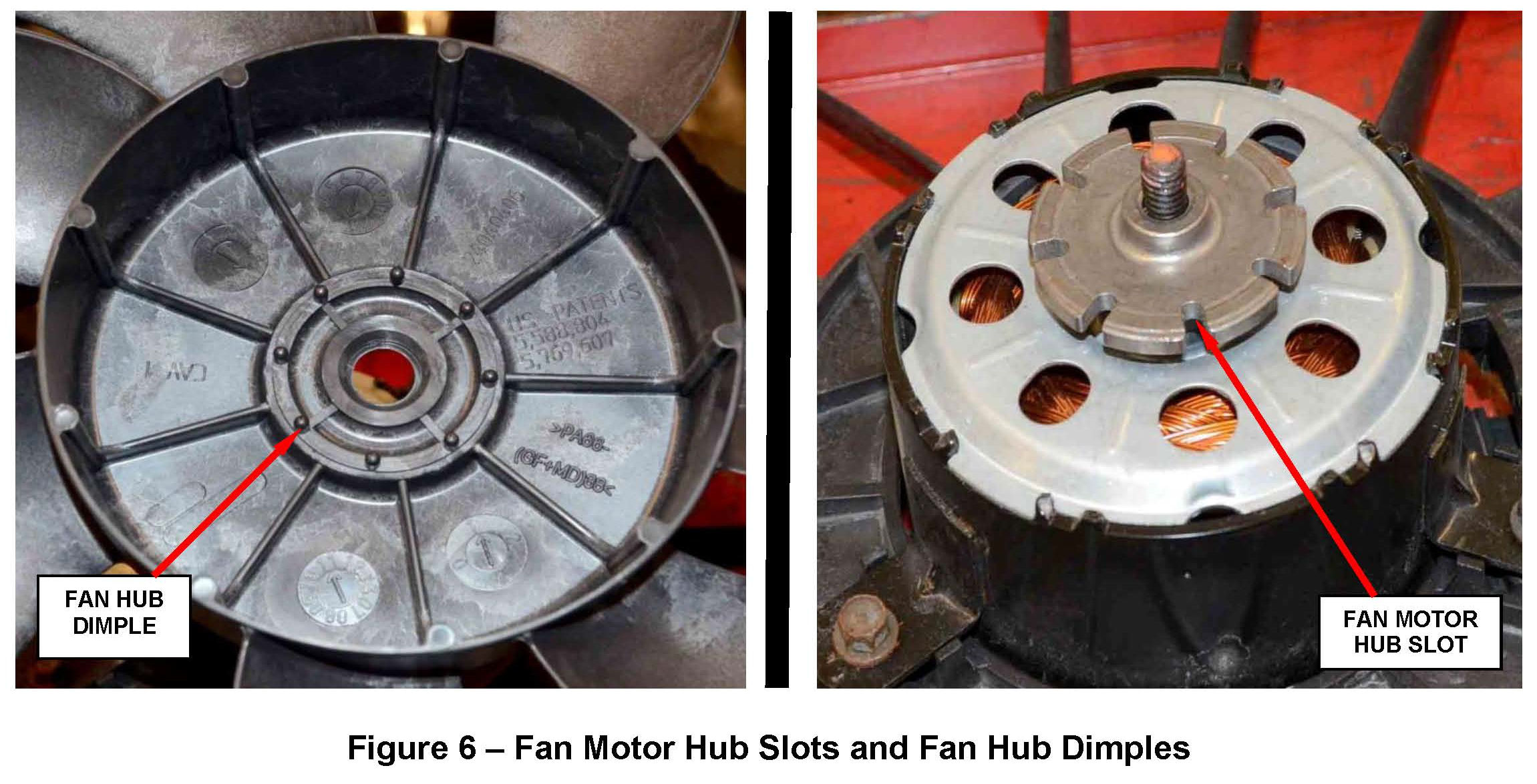 Be sure that the fan hub dimples line up with the slots on the fan motor hub (Figure 6).