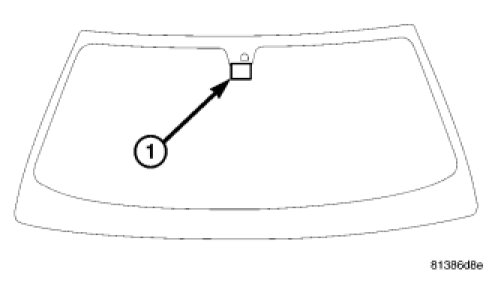 The rain sensor is located on the inside of the windshield, just below the rear view mirror mounting button (1).