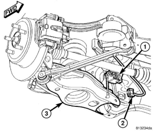 3. Export Only - If servicing right spring link, disconnect headlamp leveling sensor (1) link at spring link (3).