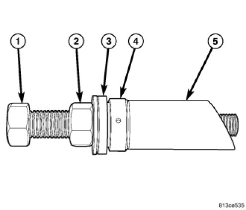 10. Remove bolt and nut (1) fastening spring link (4) to crossmember.