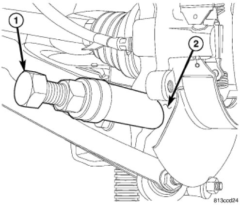 4. Remove spring link-to-knuckle nut and bolt (2).