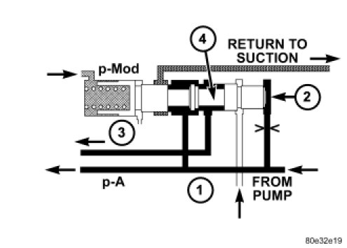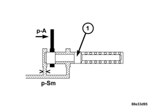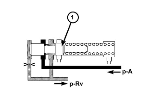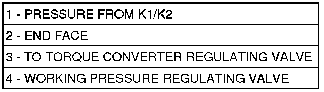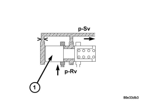 The regulating valve pressure is regulated at the regulating valve pressure regulating valve in relation to the working pressure (p-A) up to a maximum pressure of 8 bar (116 psi). It supplies the modulating pressure regulating solenoid valve, the shift pressure regulating solenoid valve and the shift valve pressure regulating valve.