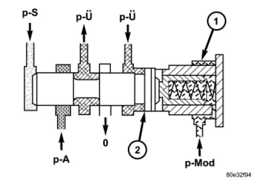 - Determines together with the modulating pressure the pressure reduction at the deactivating shift element as regulated by the overlap regulating valve.