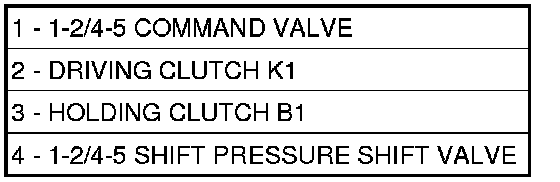 Each shift group possesses one holding pressure shift valve (1). The 1-2 / 4-5 and 2-3 holding pressure shift valves are installed in the shift valve housing; the 3-4 holding pressure shift valve is installed in the valve housing. The holding pressure shift valve allocates the working pressure to one actuator of a shift group.