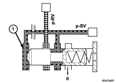The shift valve pressure regulating valve (1) is located in the valve housing of the electrohydraulic control module. It regulates the shift valve pressure (p-SV).