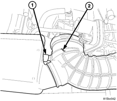 The Inlet Manifold Air Temperature (IAT) sensor (1) is installed into the rubber air intake hose (2) near front of throttle body.