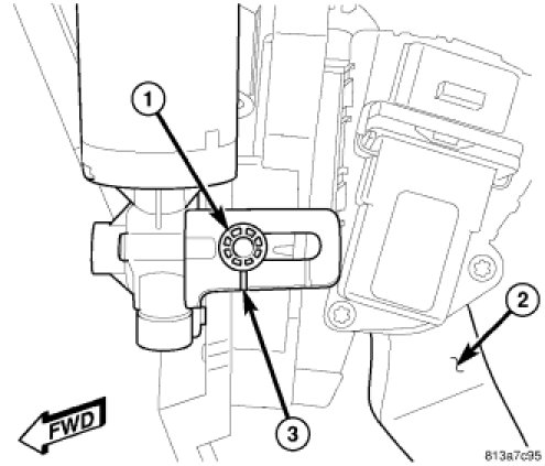 5. Reconnect the adjuster cable to the adjuster motor. If the cable resists connection, if equipped, turn the adjustment knob (2) by hand until the cable drops into place. If not equipped with the adjustment knob, wiggle the cable around until the cable drops into place.