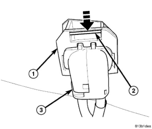 NOTE: To remove wheel speed sensor connector from body wiring harness connector, move retaining clip (2) and pull sensor connector outward.