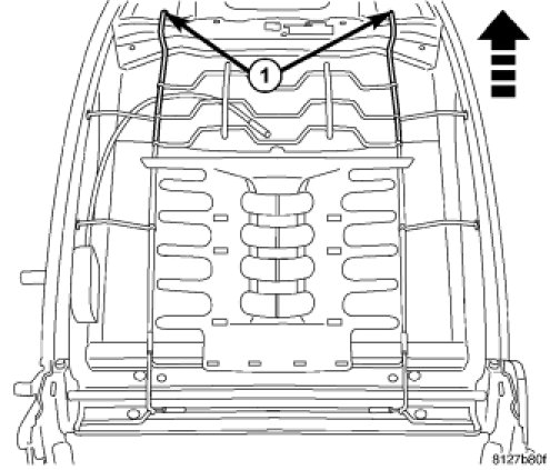 3. Place lumbar mat onto seat back frame and insert the upper support wires (1) into the frame.
