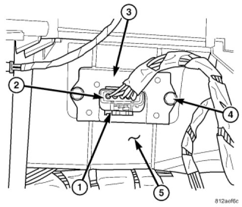 1. Position the blower motor resistor (3) into the HVAC housing (5).