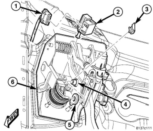 3. Mount the stop lamp switch into the bracket on the brake pedal assembly (6) as follows: Depress the brake pedal as far down as possible. Install the switch in its bracket by aligning the index key on switch with the notch in the square mounting hole of the mounting bracket. Once the switch is fully seated, rotate the switch clockwise approximately 30 degrees to lock the switch into the bracket.