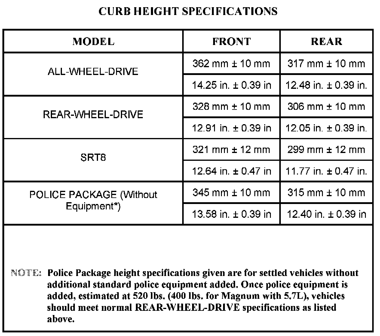3. Compare the measurements to the specifications listed in the following Curb Height Specifications chart.