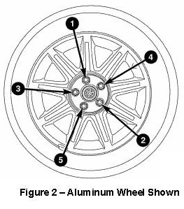 6. Tighten the lug nuts on both rear wheels in the sequence shown in Figure 2 to the following: