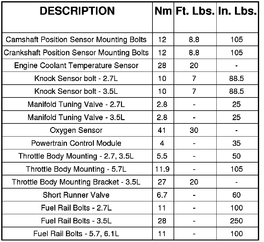 Fuel Injection Torque Specifications