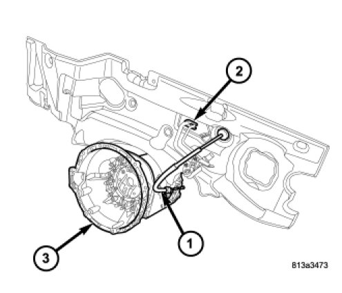 2. Install the grommet (2) to the dash panel.