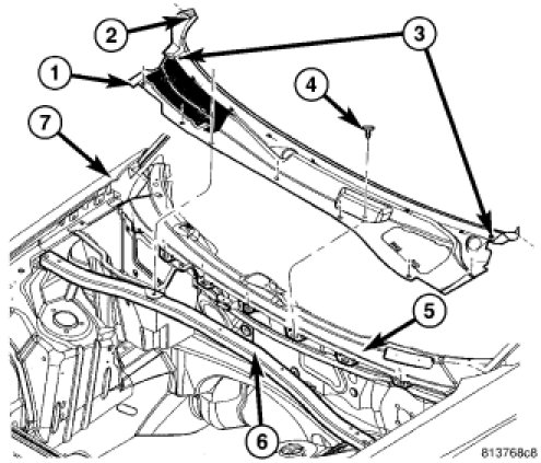 5. Install the cowl panel (1) Cowl Top Panel - Installation.