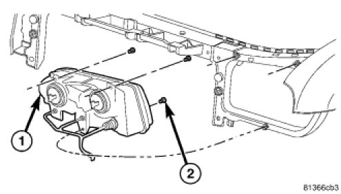 1. Position the headlamp mounting crossmember (1) into the engine compartment.