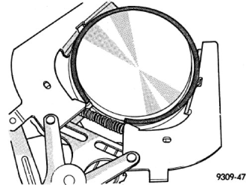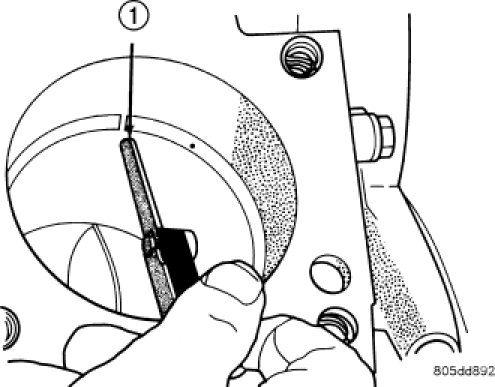 1. Measure the ring side clearance as shown make sure the feeler gauge (1) fits snugly between the ring land and the ring. Replace any ring not within specification.