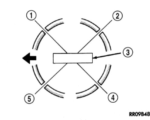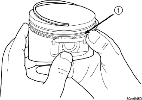 5. Install the oil expander so the ring gap is located in the (1) position.