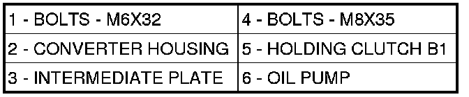 26. Unscrew Torx(R) socket bolts (4) and remove oil pump (6). Screw two opposed bolts into the oil pump housing and press the oil pump out of the converter housing by applying light blows with a plastic hammer.