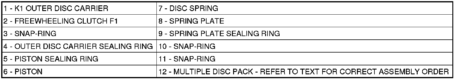 1. Remove snap-ring (11) from outer multiple-disc carrier (1).