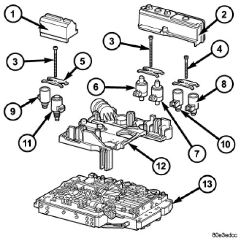22. Install the solenoid valves (6 - 11) into shift plate (13).