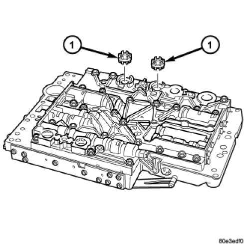 19. Install the strainers (1) for the modulating pressure and shift pressure control solenoid valves into the valve housing.