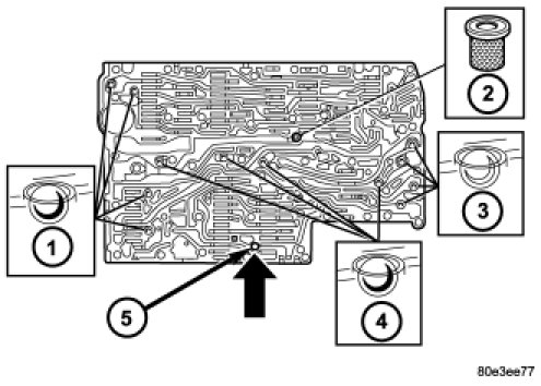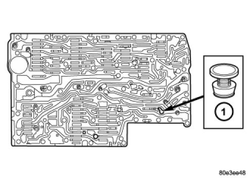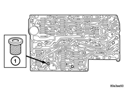 14. Install the strainer (1) in the inlet to torque converter lock-up control solenoid valve.