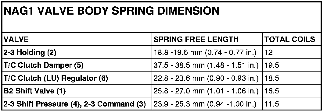 2. Lubricate and install the B-2 Shift Valve assembly (1), 2-3 Holding Pressure Valve assembly (2), 2-3 Command Valve assembly (3), 2-3 Shift Pressure Shift Valve assembly (4), TCC Damper Valve (5) if equipped and the T/CC Lock-Up Regulator Valve assembly (6) into the valve body.