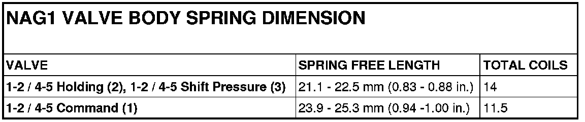 6. Lubricate and install the 1-2 / 4-5 Command valve assembly (1), 1-2 / 4-5 Holding Pressure Shift Valve (2) and the 1-2 / 4-5 Shift Pressure assembly (3) into the valve body.