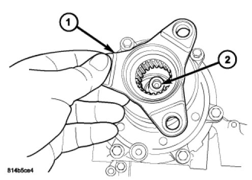 35. Install the rear output shaft flange (2) onto the output shaft. Install a new nut.