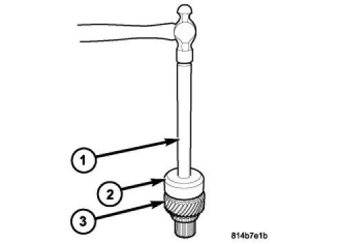 10. Install the front bearing onto the hollow shaft (3) with Handle C-4171 (1) and Installer C-4213 (2).