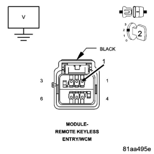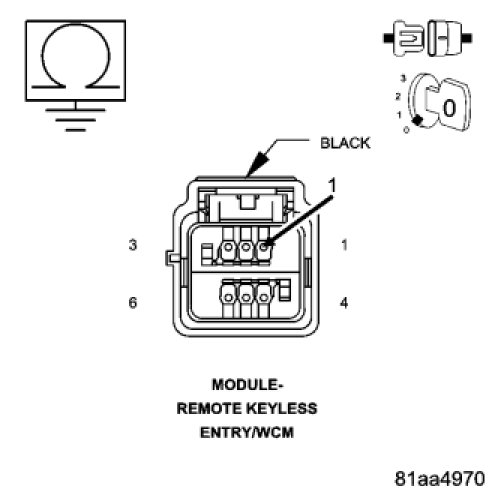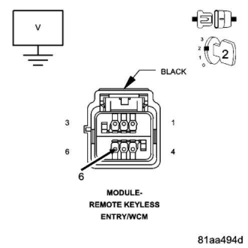 Using a 12-volt test light connected to 12-volts, check the (Z943) Ground circuit in the RKE module connector.