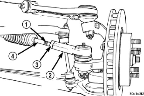 7. Grasp inner tie rod (4) at adjustment serration (1). Rotate inner tie rod in direction required to obtain specified individual wheel toe position. Specifications