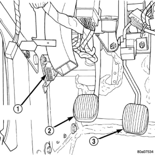 The Data Link Connector (DLC) (1) is located inside the vehicle, below the instrument panel.