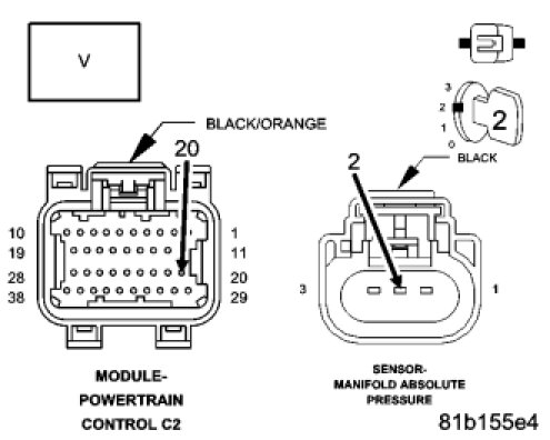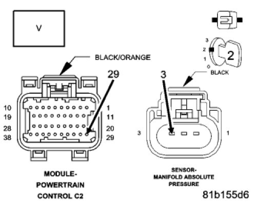 NOTE: The MAP Sensor signal voltage should change from below 2.0 volts at idle to above 3.5 volts at wide open throttle.
