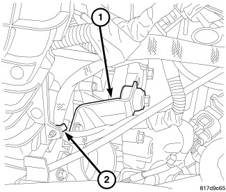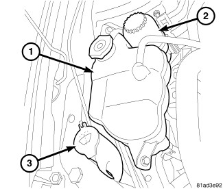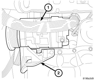 17. Align torque converter and flex plate mark. Install torque converter bolts (1) and tighten.