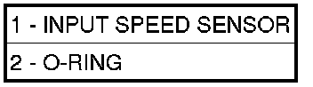 The Input Speed Sensor (1) is sealed with an O-ring (2), and is considered a primary input to the Powertrain/Transmission Control Module.