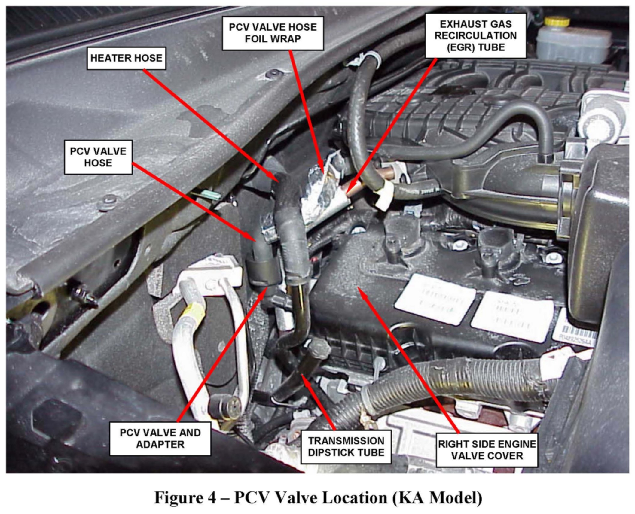 4. On KA models only, unscrew the PCV valve from the right side valve cover PCV adapter (Figure 4).