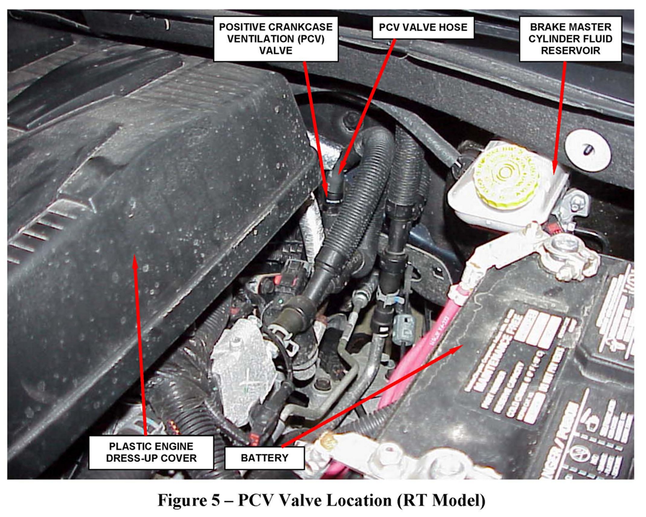 5. On RT models only, unscrew the PCV valve from the transmission side of the rear valve cover (Figure 5).