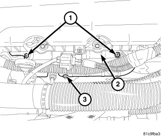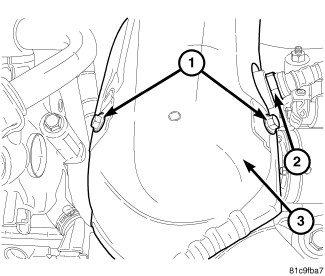 9. Install heat shield (3) and bolts (1). Tighten bolts to 12 Nm (106 in. lbs).