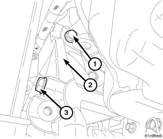 12. Install front mount through bolt (1) to transmission bracket (2) and mount (3). Tighten bolt to 47 Nm (35 ft. lbs.).