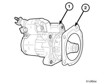 2. Position starter (4) into transmission housing (3), install ground wire (1) and starter mounting bolts (2). Tighten bolts to 54 Nm (40 ft. lbs.).